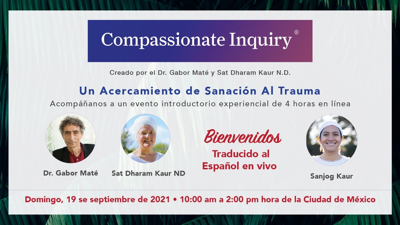 Estamos emocionados de contar con tu presencia en el primer evento introductorio a Compassionate Inquiry en español. El evento tiene una duración de 4 horas y será facilitador por el Dr. Gabor Maté, Sat Dharam y Sanjog.